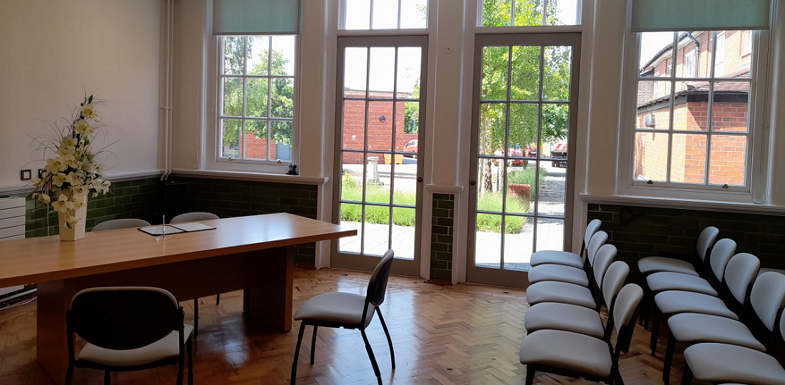 Redditch provides a modern purpose-built accommodation, decorated in soft neutral tones. The ceremony room has an attractive ceiling window which provides a light and airy room for your special day.