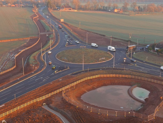 Ecological elements were covered as part of planning and taken into consideration whilst the roundabout works were in progress. Newt culverts under the road and gulley bypasses, as well as bat lighting have been included as part of the work.