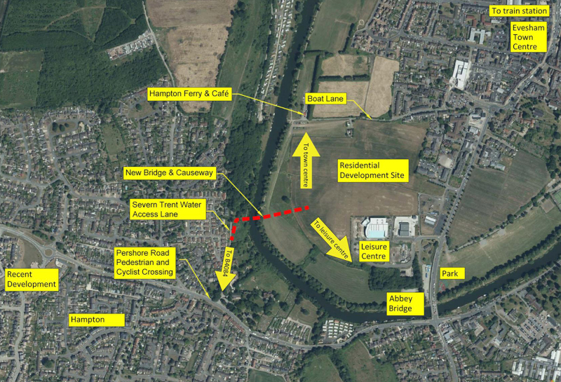 - a direct link between the Hampton area of Evesham and Evesham town centre as well as access to local amenities and key destinations on the eastern side of the River Avon including schools, workplaces, leisure centre and rail station.