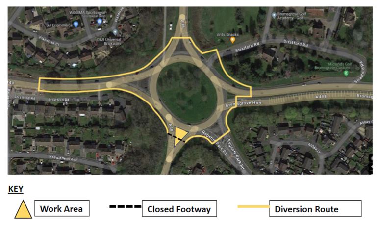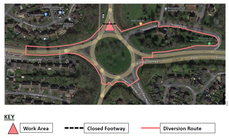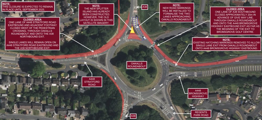 This will involve the closure of the exits and entries to the roundabout, including the M42 slip roads, Old Birmingham Road and Alcester Road. The A38 will remain open, with two-way traffic signals either side of the roundabout.