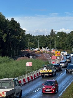 An initial review has been carried out. The design itself is technically sound, however, the layout is not yet operating as intended. This is largely because other elements of the wider programme and the temporary traffic management are influencing how traffic flows through this section. Until these surrounding constraints are removed, the road cannot function as envisaged in the final scheme.
