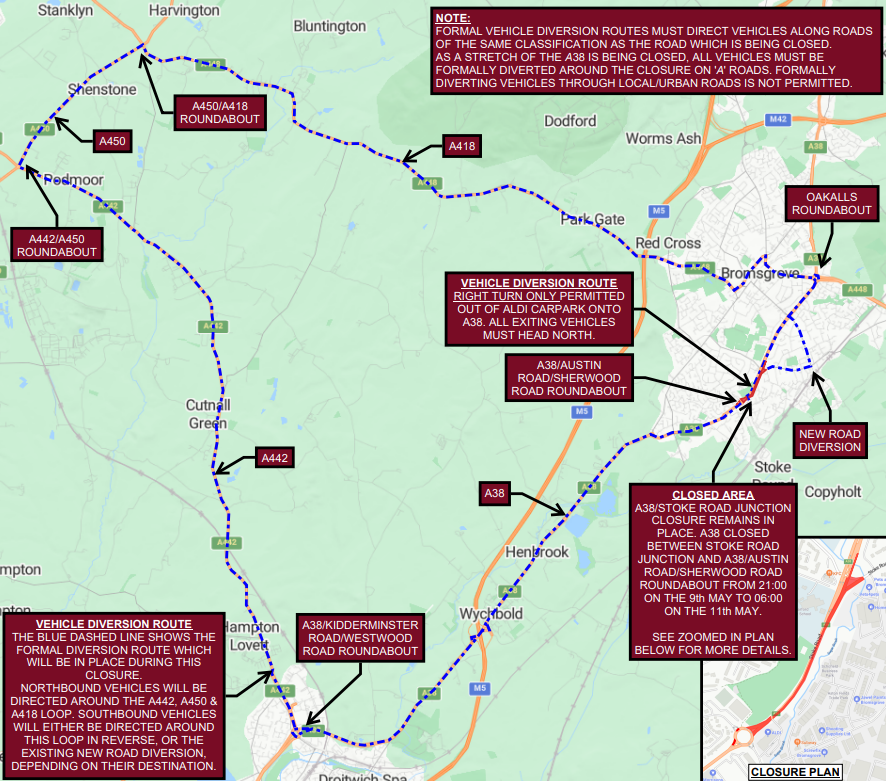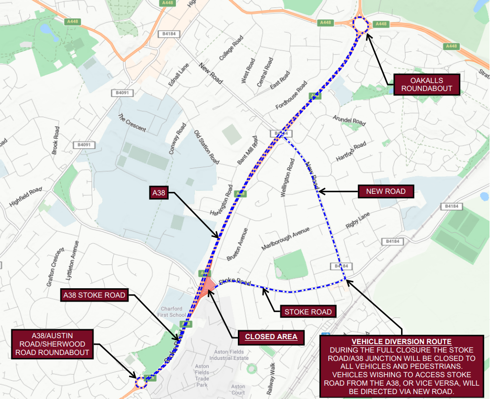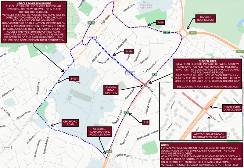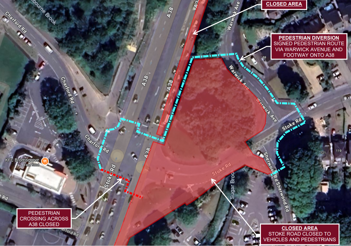 A38 Redditch Road will be closed in both directions.