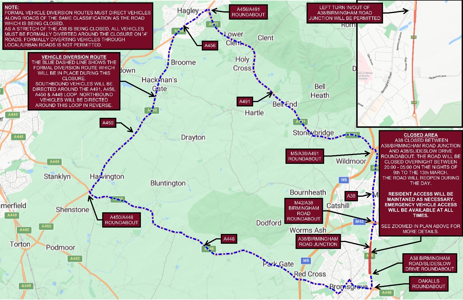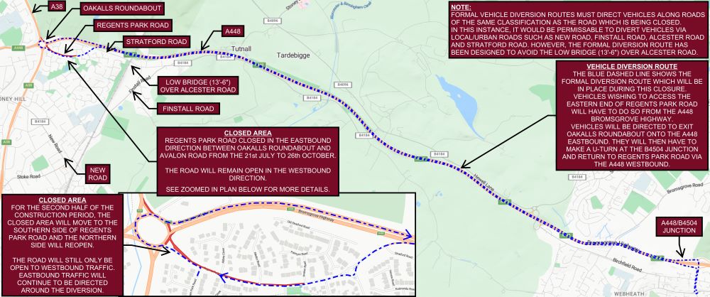 A38 Redditch Road (Hanbury Road) – planned road closures