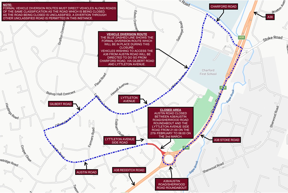 Scheme F – A38 Birmingham Road night time closure (9 to 14 March)