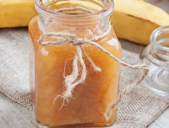 1. Soak the brown banana skins in cold water for an hour, replacing the water twice during that time, then drain. Put the skins in a saucepan with fresh water, bring to a boil, simmer for five minutes, then drain and leave to cool. Once cool, roughly chop the skins into small pieces.