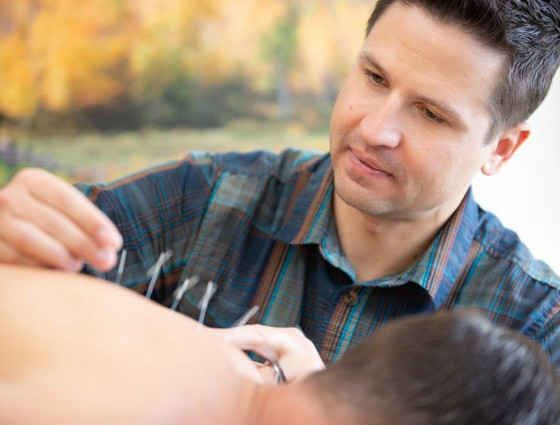 Acupuncturists insert needles into pressure points on clients' bodies to help with stress and improve their wellbeing.