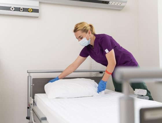 Linen services make sure that hospital departments have stocks of clean uniforms and linen, such as sheets and towels for patients.